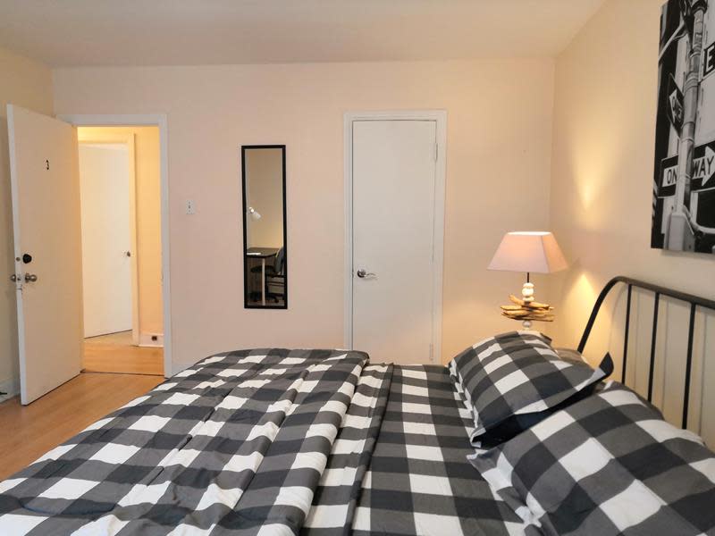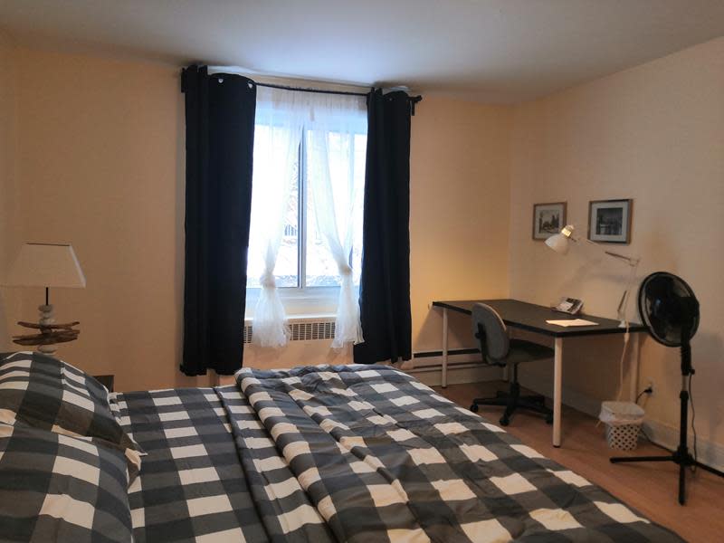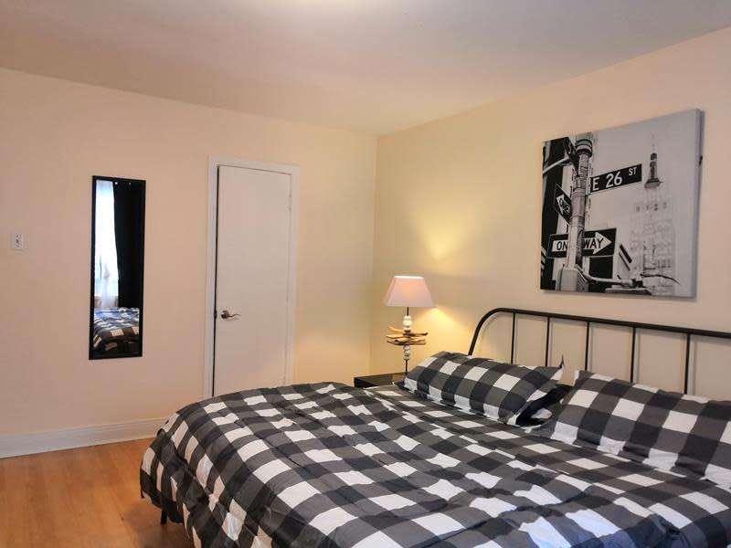 Superbe chambre avec lit King! le plus grand format soit 2m sur 2m, de quoi de prélasser le weekend et dormir confortablement la semaine! C'est la dernière chambre de l'appartement à coté de la cuisine.