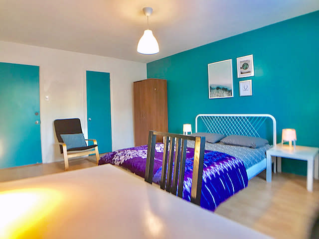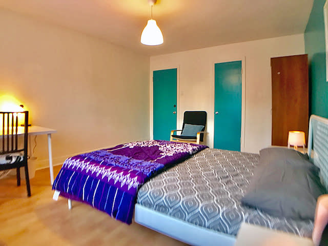 C'est la dernière chambre de l'appartement. C'est une grande chambre confortable. L'armoire est incluse, de quoi ranger toutes vos affaires.