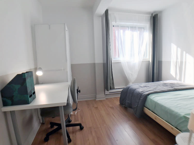C'est la dernière chambre de l'appartement elle se situe au bout du couloir entre la chambre 3 et la cuisine. Petite mais coquette elle a tout le nécessaire pour les étudiants qui aiment les petits espaces confortables. Elle est très lumineuse l'après midi.